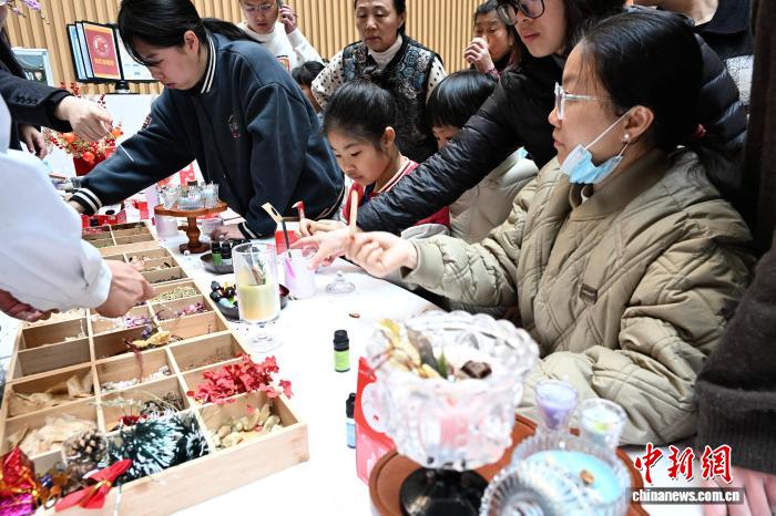 3月15日,祸州市西医院54北院区举办启诊周年庆举动,现场挨制的沉溺式西医药领会空间吸收了很多市平易近前去体察,正在举动中让公众领会西医药学问,感触感染西医药文明魅力。图为公众正在举动进步止中药喷鼻薰烛炬DIY。中新社记者 弛斌 摄