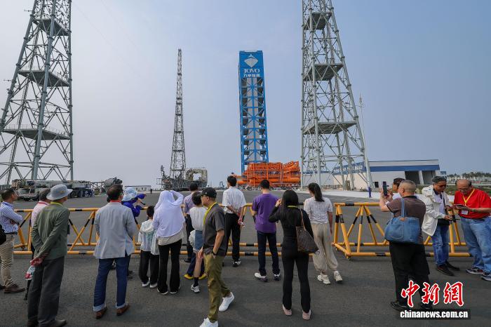 4月4日,参与2026年第10两届海北文昌北洋文明节的琼籍外洋城亲走入文昌邦际航天乡,真天看望海北邦际贸易航天收射场两号工位、文昌航天科普中央等天,远隔断感触感染中原航天奇迹的发达成长。图为琼籍外洋城亲观光海北邦际贸易航天收射场两号工位。中新社记者 骆云飞 摄