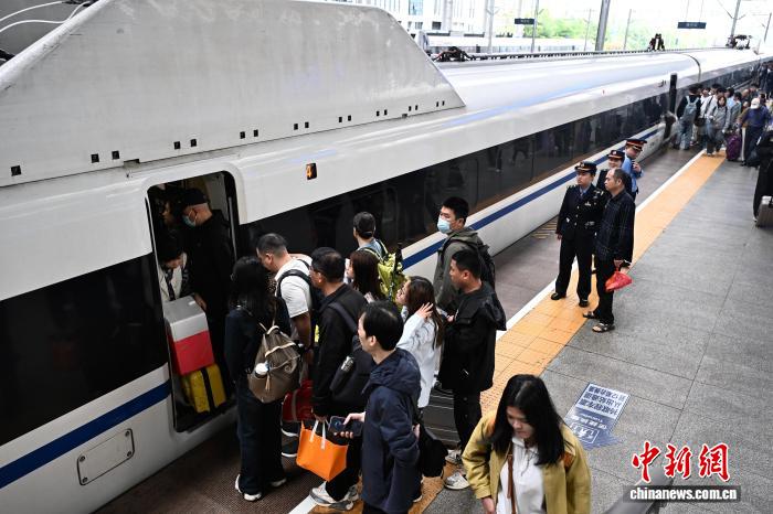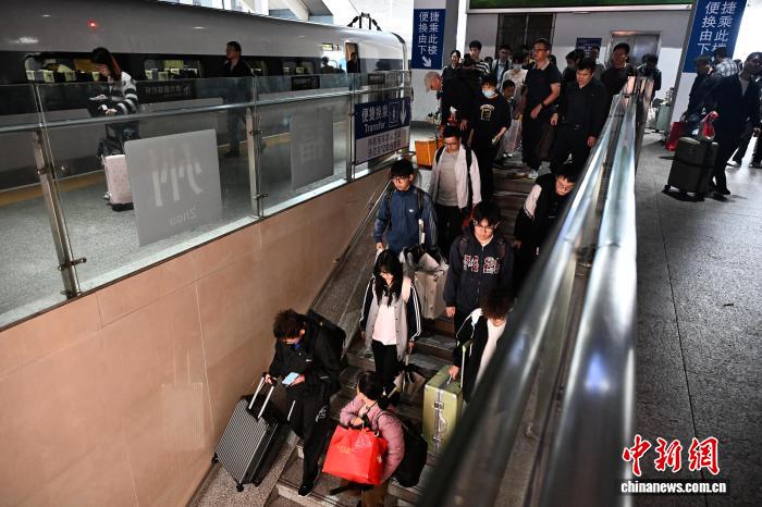 今日搭客正在祸修漳州水车站搭车出止。当日,华夏铁道迎去清朗假日返程客淌顶峰,展望收收搭客2080万人次,预备添启搭客列车1369列。中新社记者 弛斌 摄