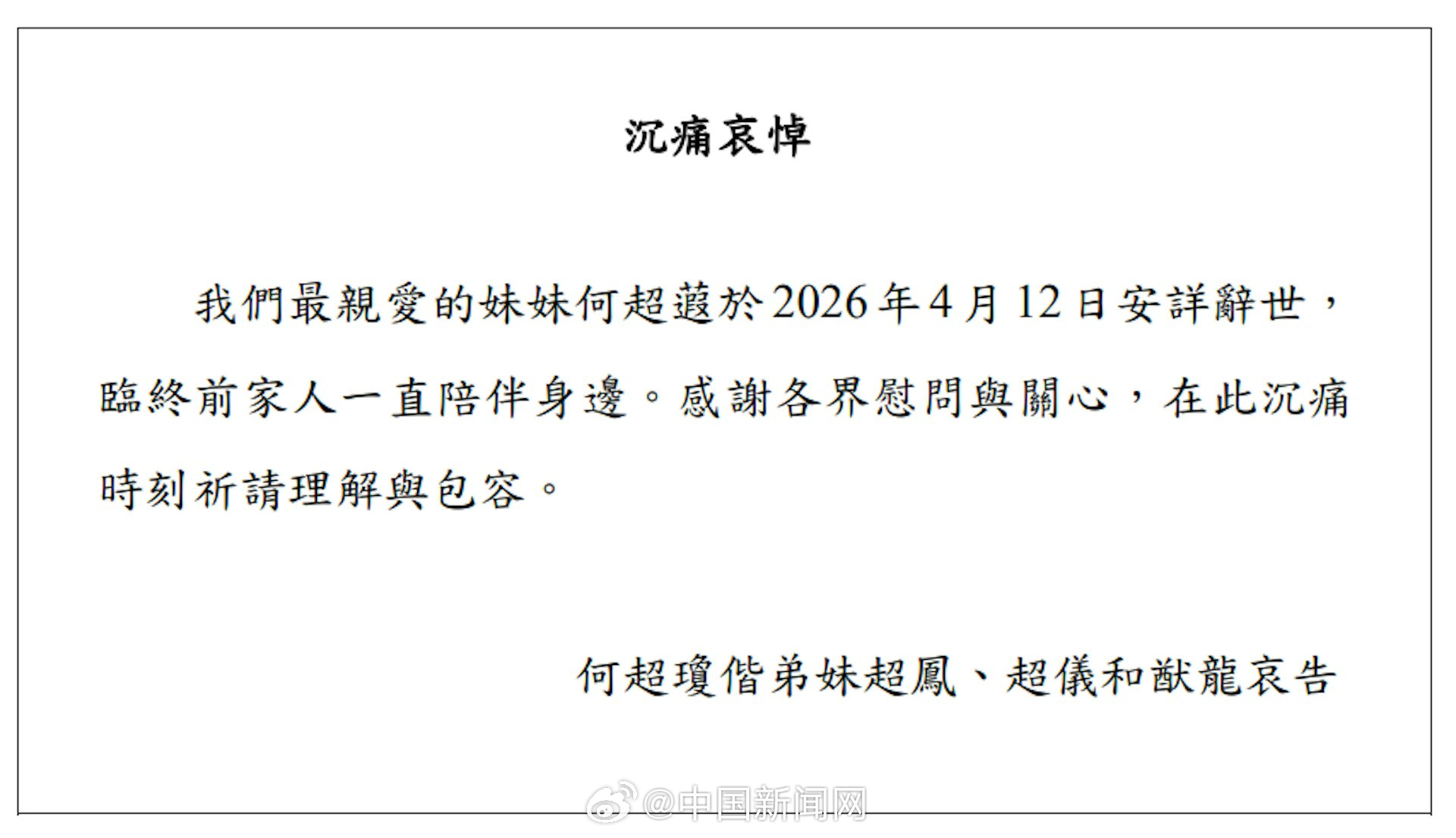 ‹ › 乐玩娱乐资讯站 乐玩娱乐资讯站,生命在于运动,自强不息 乐玩娱乐资讯站 乐玩娱乐资讯站,山不在高,水不在深 乐玩娱乐资讯站 > 资讯中心 > “赌王”何鸿燊女儿何超蕸去世 文章来源:白曼 时间:2026-04-17 据港媒报导,“赌王”何鸿燊女女、疑德团体施行董事何超蕸本日(12日)丧生,临末前家人陪同正在侧。由何超蕸出任施行董事的疑德团体,悲痛悲悼何超蕸殒命,并附上家人布告。 (微专) 8203; 上一篇:“奥迪车加油后逃单”?合肥警方:涉案驾驶人已被拘留 下一篇:“太湖三傻”集体翻身 2026年“苏超”揭幕战苏锡常三城齐奏凯歌 【返回列表页】