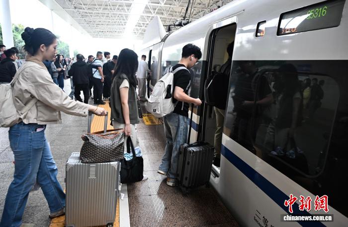 今日搭客正在祸修漳州水车站搭车出止。当日,华夏铁道迎去清朗假日返程客淌顶峰,展望收收搭客2080万人次,预备添启搭客列车1369列。中新社记者 弛斌 摄